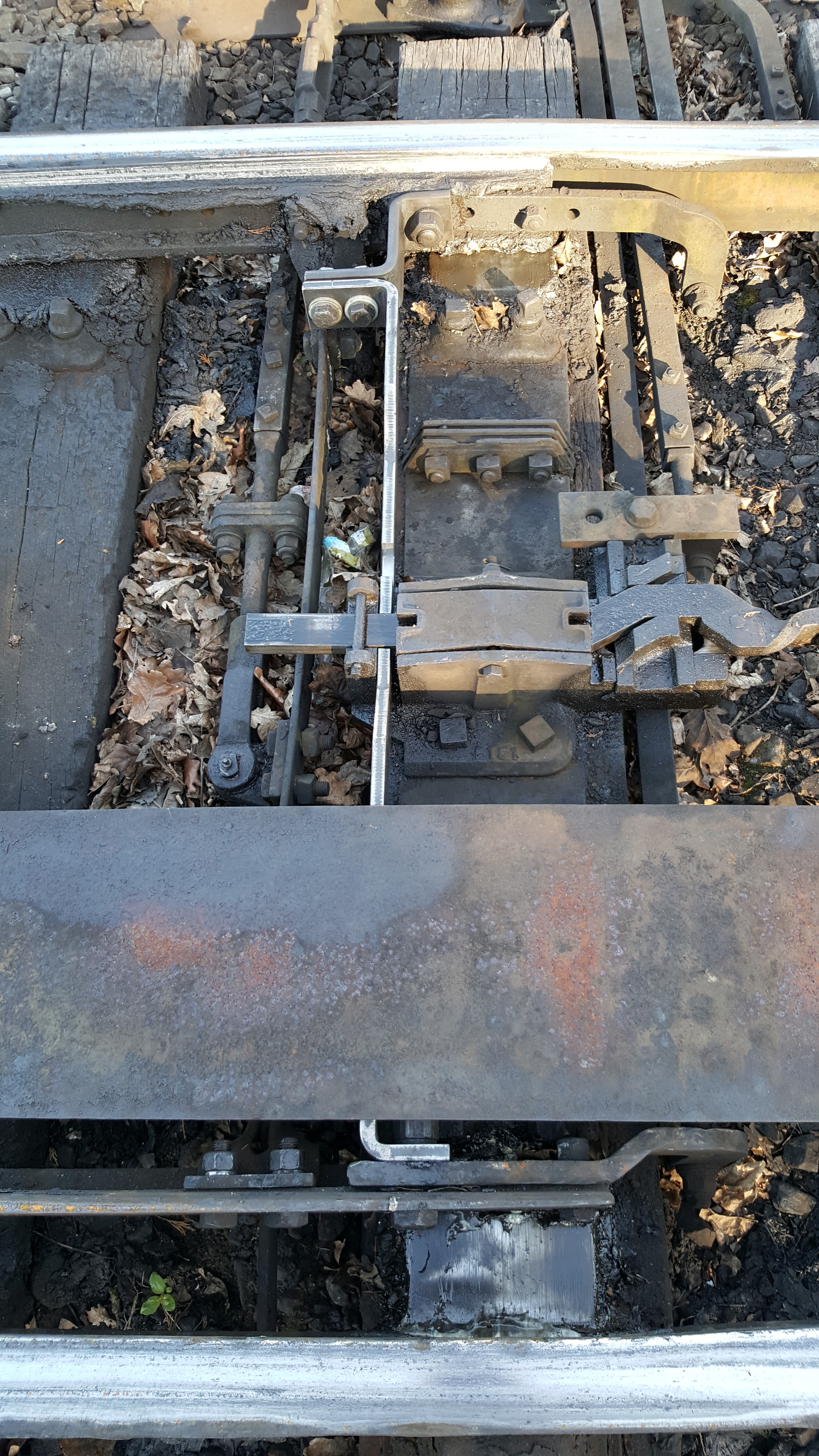 The rodding run to these points is a popular target when coaling engines at Kidderminster, during ash disposal and being driven over by JCBs but this does not normally cause major problems. The only way to track down such a problem is by disconnection so yet another Sunday afternoon disconnection was needed. The same signalman was on duty again so we took great care not to disrupt his breaks, leaving 52 points lever mid-stroke and the points disconnected for most of the day. The 'lead off' crank (outside the box) and the pin joints which connect the crank to the point rodding proved to be badly worn and the pin joint at the compensator, half way along the run, was lifting and jamming. It was a fairly straightforward job to replace the lead off crank with a refurbished spare and to fit new pin joints but the jamming required a new length of point rodding to be cut and the roller casting block had to be dug out and lowered. It took all four of us until 5.30pm to get it reconnected but it was then closing up reliably and correctly every time.