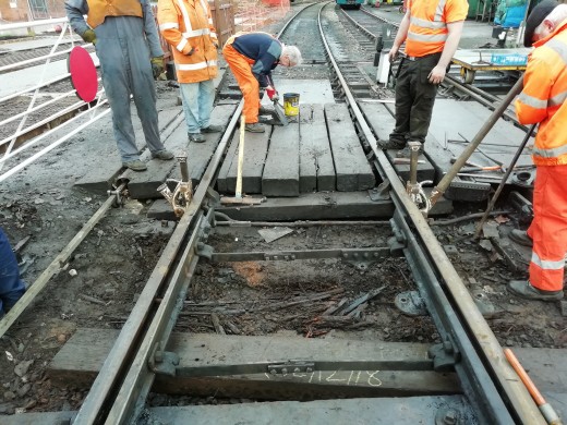 By about 14:30 the P-Way work was substantially complete and we started to refit our equipment, which required another six holes to be drilled and four fang bolts and two coach screws fitted. The track was helpfully jacked up for us to fit these and our work was complete by about 15:30 and by 16:15 we had reconnected, adjusted and tested our equipment and booked it back on again.