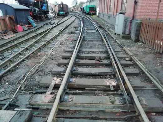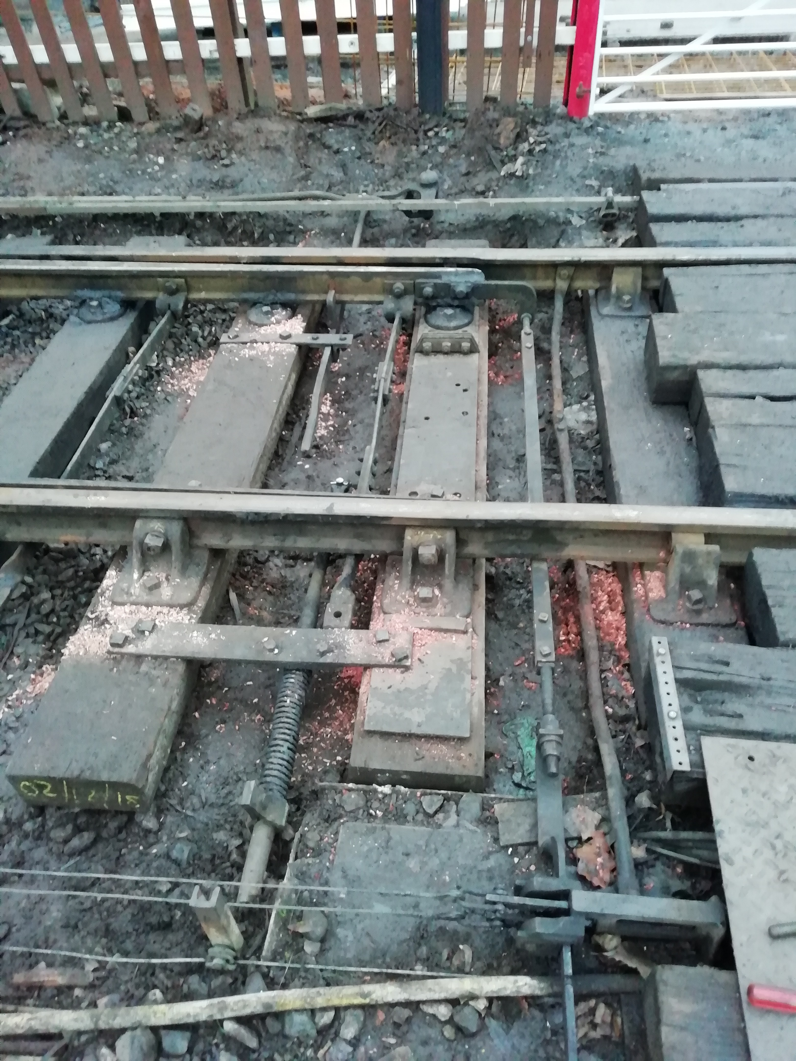 There had been complaints about pointwork heavy or difficult to operate at Kidderminster and so we did a survey of the rodding on 6 January. Although several compensators were worn, a few were so badly worn as to require replacement. Situated as they were, buried in a rodding run of some thirteen rods, this would also have to be a Winter job. The compensators on 33 FPL (facing point lock), that on the main run to 31 points (the connection in the compound providing access from platform 1 to the Yard and that on 17 FPL would need to be replaced as well as a worn pin on that for 25 FPL. We had replacements in stock as we had refurbished worn units from elsewhere. We rely upon the C&W Department for machining the main pins on the compensator bases and we have a small queue of about half a dozen worn ones awaiting their attention as and when convenient. The Winter work will deplete our stocks somewhat!